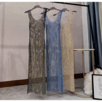 فستان نسائي من القماش الشبكي الماسي السفلي ، رقبة مستديرة ، طويل ، مثير ، رقيق ، لامع ، زفاف ، حفلات ، ملابس نهارية