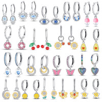 الكرز دونات 925 الفضة مطلي أقراط مزدوجة جرلي القلب هدية الإكسسوارات الفقرة Mujer بالجملة