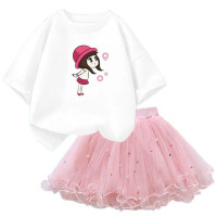 مجموعة ملابس قطنية للفتيات الصغيرات ، تي شيرت وتنورة ، فستان الأميرة ، ملابس كرتونية ، رسومات ، أطفال ، الصيف ، الموضة ، 2 * *