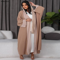 عباية مفتوحة من الأمام للنساء موضة قصيرة مرقعة صلبة عربية دبي كيمونو مغربي كوربان عيد جديد رداء خارجي إسلامي 2023
