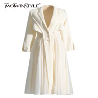 فستان نسائي قصير من TWOTWINSTYLE برقبة على شكل V وأكمام طويلة وخصر عالي ومزين بطيات واحدة برسومات مختلفة فستان نسائي جديد لفصل الخريف