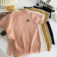 تيشيرت نسائي مطبوع على القمر من ITOOLIN ، بأكمام قصيرة ، توب قصير غير رسمي محبوك ، بلوفر مكتبي برقبة دائرية ، قميص Y2K ، تي شيرت سادة ، الصيف ،!