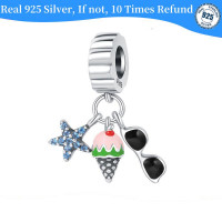 قلادة من الفضة الإسترلينية للنساء ، نجم البحر ، الآيس كريم ، النظارات الشمسية ، قلادة ، تناسب أساور الباندورا ، القلائد ، المجوهرات التي تصنعها بنفسك