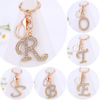 A-Z الموضة إلكتروني المفاتيح حجر الراين كريستال 26 الإنجليزية رسالة الأولي كيرينغ للنساء سيارة حقيبة يد مجوهرات هدايا مفتاح سلسلة