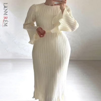 Lanmrem-فستان نسائي أنيق بثنيات ، رقبة مستديرة ، حزام ، خصر متجمع ، أحادي اللون ، فساتين حفلات طويلة ، جديد ، ربيع ، 32C330