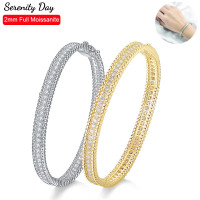 Serenty Day-Full Moissanite سوار للنساء ، S925 فضة ، 18K الذهب ، دوائر اليد ، مهرج أضعاف ارتداء ، غرامة مجوهرات ، 2 مللي متر