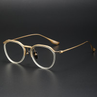 اليدوية خلات التيتانيوم وصفة طبية نظارات للرجال والنساء ، مستديرة و البيضاوي إطار نظارات ، الفاخرة الرجعية نظارات ، نظارات عالية الجودة